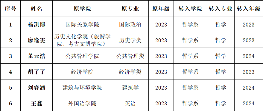根据校教务处《关于开展2024年本科生转专业工作的通知》要求,我系于4月22日组织专家进行考核,现将拟接收名单予以公示,见附件一。