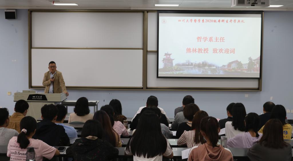 9月22日下午14:00,哲学系2020级本科生开学典礼在江安一教B座204举行。哲学系52名本科生,哲学系在职教师代表共同参加此次典礼,典礼由哲学系曾怡副主任主持。