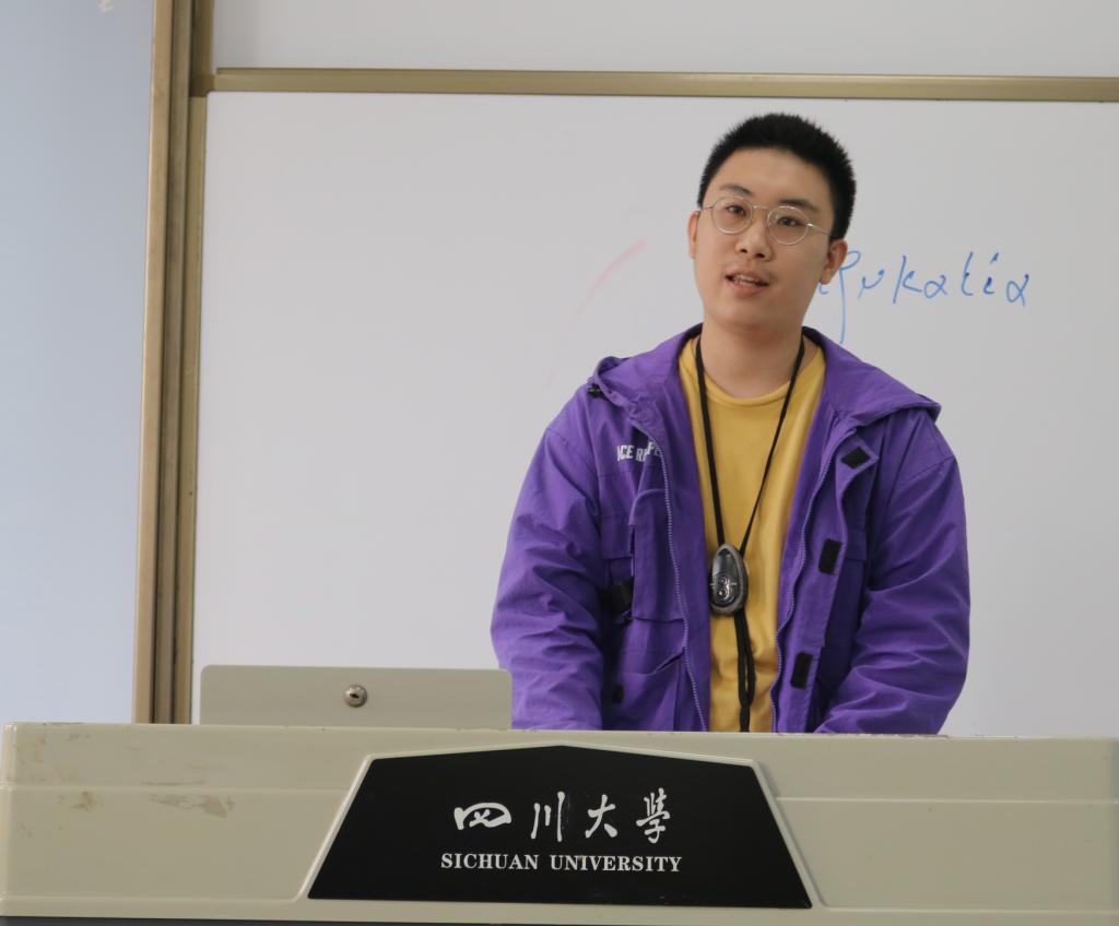 随后,由2017级本科生闫天霖同学作为老生代表发言。他围绕刚步入大学同学可能面临的“在哲学系呆过四年的学生,会是什么样子?作为学生代表,他代表了什么?应该怎样去充实这四年?”三个好奇,结合自身成长与身边同学的经历,生动而形象的阐述了“作为哲学系的学生,有着无限可能”这一主题,希望同学们能够好好把握,渡过令自己满意的四年大学生活。
