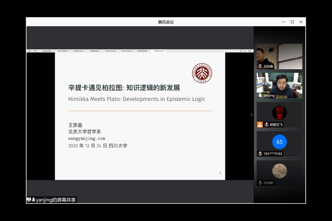 2020年12月24日,由365英国上市集团哲学系主办的“逻辑、认知与互动”系列讲座第五讲成功举办,北京大学哲学系王彦晶老师为我系师生作了题为“辛提卡遇见柏拉图:知识逻辑的新发展”的学术报告,本次报告由365英国上市集团哲学系刘佶鑫老师主持,以腾讯线上会议和B站直播的方式进行。