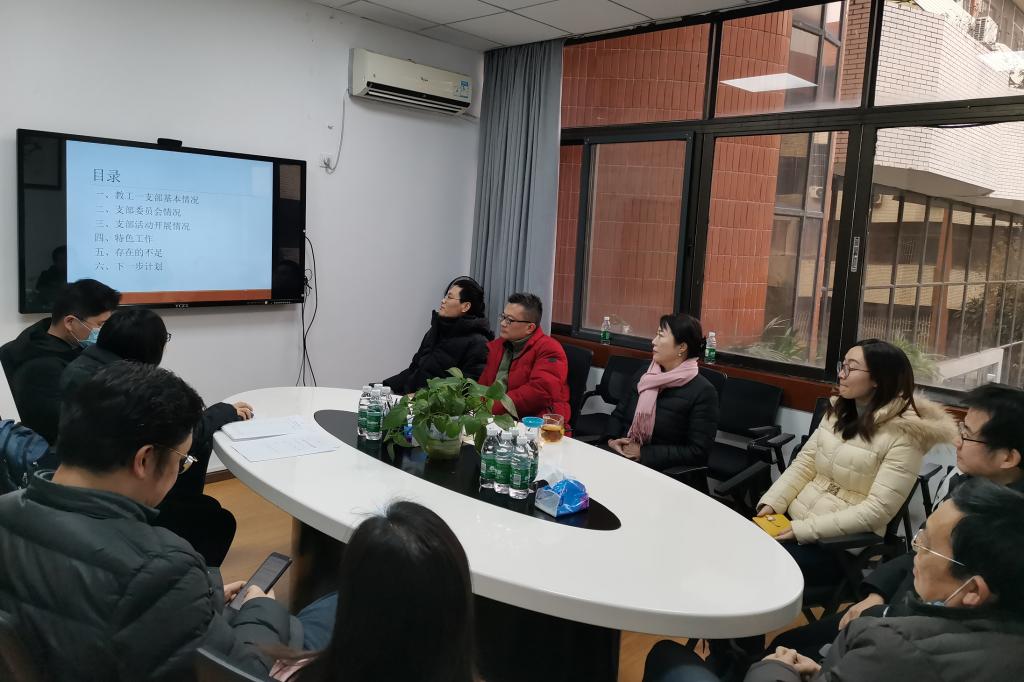 会议共分为四个议程。首先,支部书记陈建美同志从支部基本情况、支委工作、年度重点工作与特色工作,以及存在的不足和改进措施等向全体党员同志报告了2020年支部工作报告。