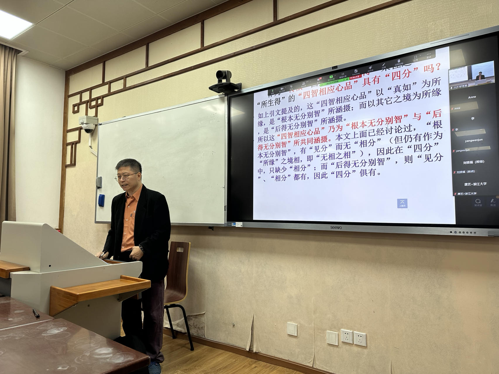 2023年10月18日下午3点,华东师范大学哲学系赵东明副教应我系的邀请,举办了有关“玄奘-窥基一系法相唯识学‘识’与‘心、心所’以及‘转依’之后‘智’的认识结构”的主题讲座。讲座由哲学系刘朝霞副教授主持。