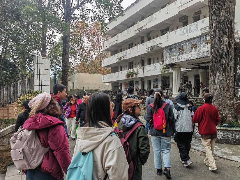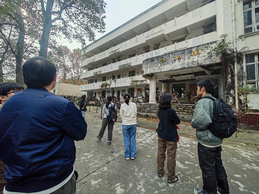 来到此处,看到依然保持着受灾后败窗颓壁的教学楼,注视着竖立在教学楼前,栩栩如生的展现着师生奔逃场景的铜铸塑像,团队成员们无不默言注视。依然伫立的不仅是旧时的教学楼,而是中国人民不屈不挠的生命精神;重建的也不只是灾后白鹿镇的残垣断瓦,更是中国人民对未来生活炽热殷切的生命希望。