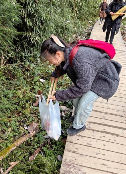本次活动分为“穿林”和“寻镇”两个进行阶段,由学生一支部副书记李霄担任总领队,角马青年的户外教练为实际向导,带领活动团队前往彭州中坝森林与白鹿镇进行净山拾野公益活动与文化走访。