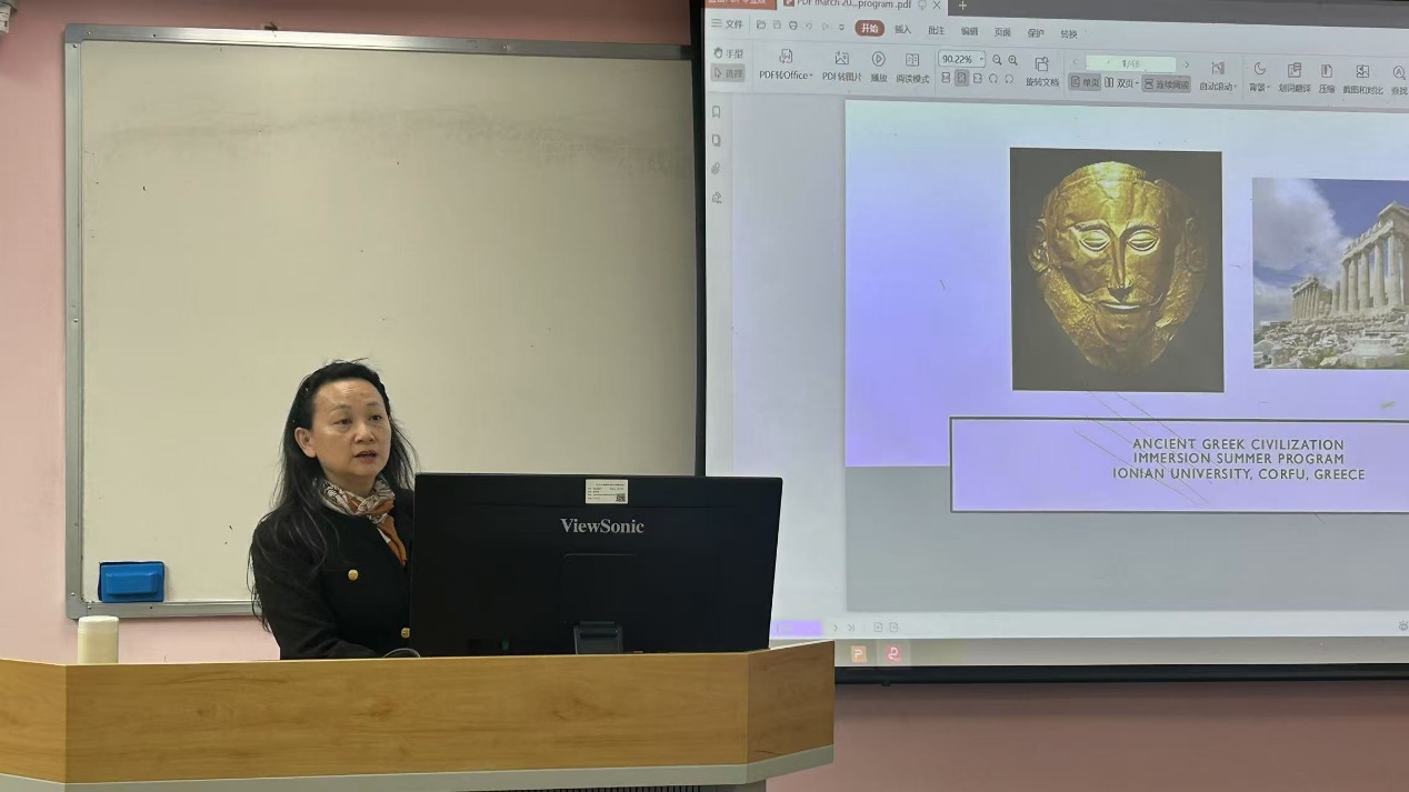 接着,国际处高级项目主任朱葵老师详细讲解了“大川视界”项目的具体内容,她从项目背景、参与条件、行程安排等方面展开,重点介绍了“中希文明互鉴青年行”项目。该项目以古希腊文明为切入点,通过实地考察、学术讲座和文化体验,促进中希文明对话,为学生提供深入了解西方哲学源头的机会。此外,朱老师还邀请了去年参与该项目的我系同学李心妍,分享了她的亲身体验和感受。