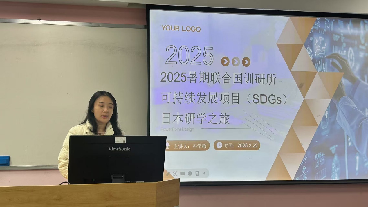 随后,国际处张宇波老师重点向同学们介绍了“大川视界”日本联合国训研所可持续发展项目和新加坡名校进名企实训项目,详细说明了两个项目的日程安排及资助政策,并强调了项目在跨文化交流和就业实训方面的独特优势。