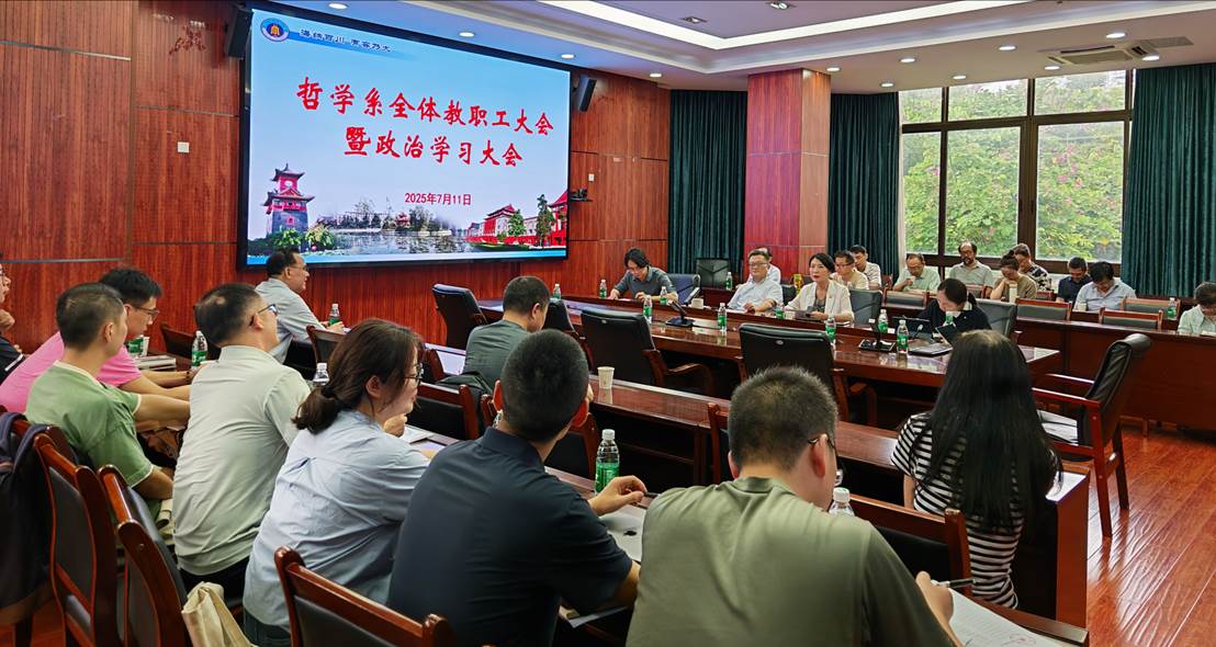 2025年7月11日下午,哲学系全体教职工大会暨政治学习会议在望江校区文科楼200号举行,全体教职工参加会议,会议由党总支书记史冰川主持。