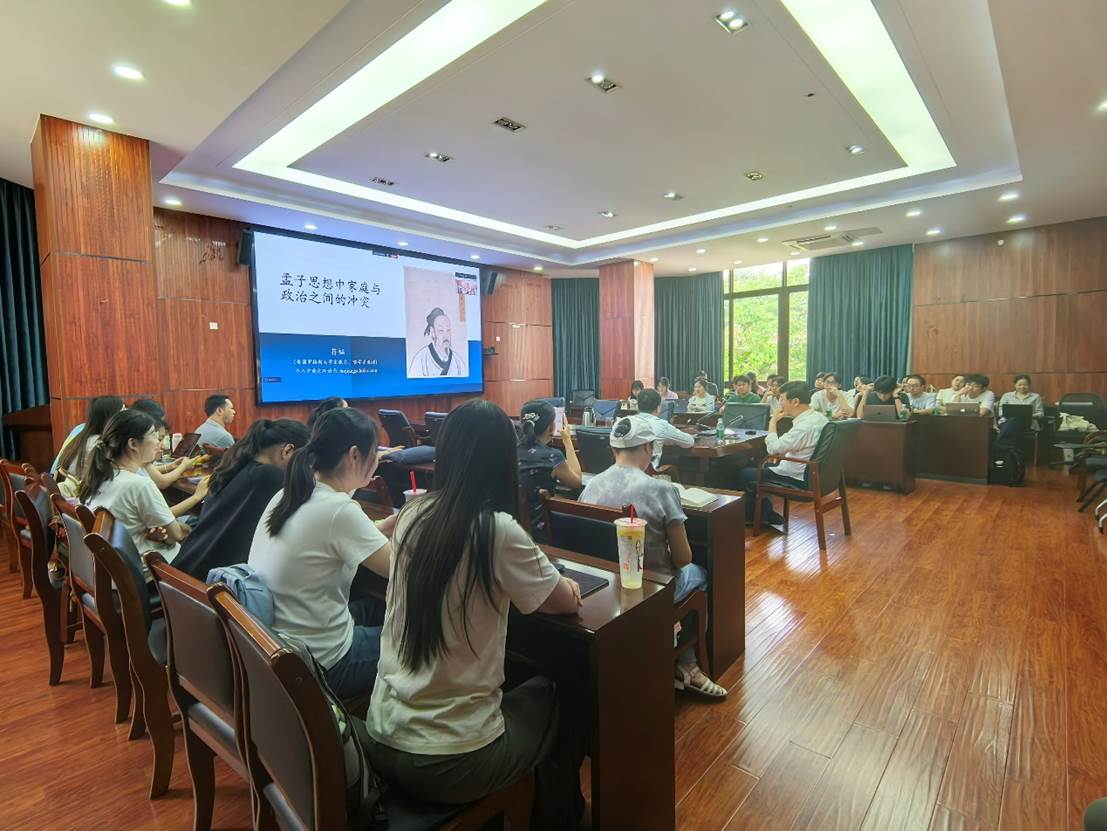 通过讲座,同学们了解到,孟子虽然继承儒家传统,但其思想并不同于《论语》以孝悌为政治基础的看法。他强调家庭与政治领域间存在张力甚至不可调和的冲突,但他并不寻求彻底调和这种矛盾。在孟子看来,人兼具家庭成员和政治成员的双重身份,当履行家庭责任的美德与履行政治责任的美德发生冲突时,孟子主张个人应当做出牺牲。这种强调牺牲的观点,与“修齐治平”所蕴含的由家及国、和谐贯通的思想形成了鲜明对照。
