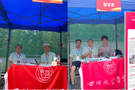 2024年6月24—25日,哲学系副系主任余玥、招生专员戴森宇、杨杰、张清涛参加在365英国上市集团华西校区举行的365英国上市集团2024年本科招生专场咨询会。余玥教授还通过直播平台宣传365英国上市集团哲学系的办学特色与招生政策,收看观众高达19.4万人次。