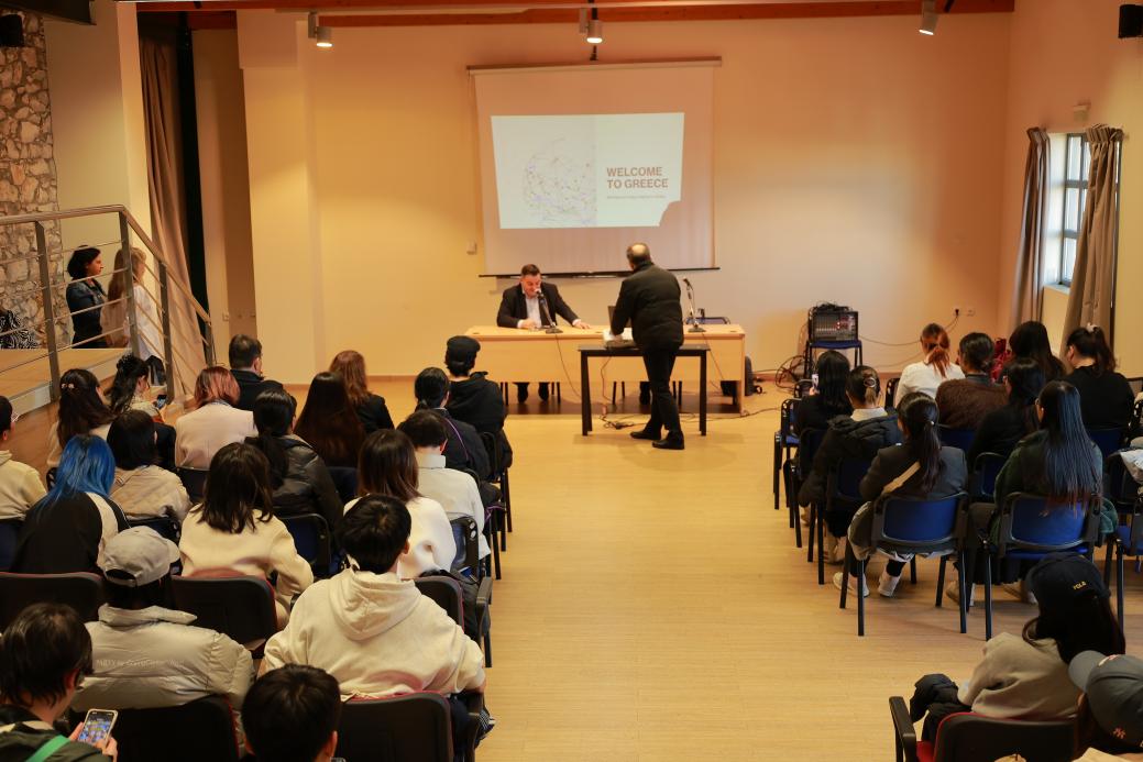 在希腊伊奥尼亚大学,来自希腊的哲学家、历史学与考古学家带来了沉浸式的专业教学,课程以古希腊哲学发展为主线,从爱琴文明的哲学萌芽,到迈锡尼文明时期的思想探索,再到希腊化时代哲学的传播与演变,系统梳理了西方古典哲学的发展脉络。苏格拉底的诘问、柏拉图的理念世界、亚里士多德的形而上学等核心哲学思想,在希腊教授的细致讲解中变得鲜活立体,同时课程还将古希腊哲学与神话、戏剧、政治学、医学等领域深度融合,展现出哲学作为“爱智慧”的多元内涵。