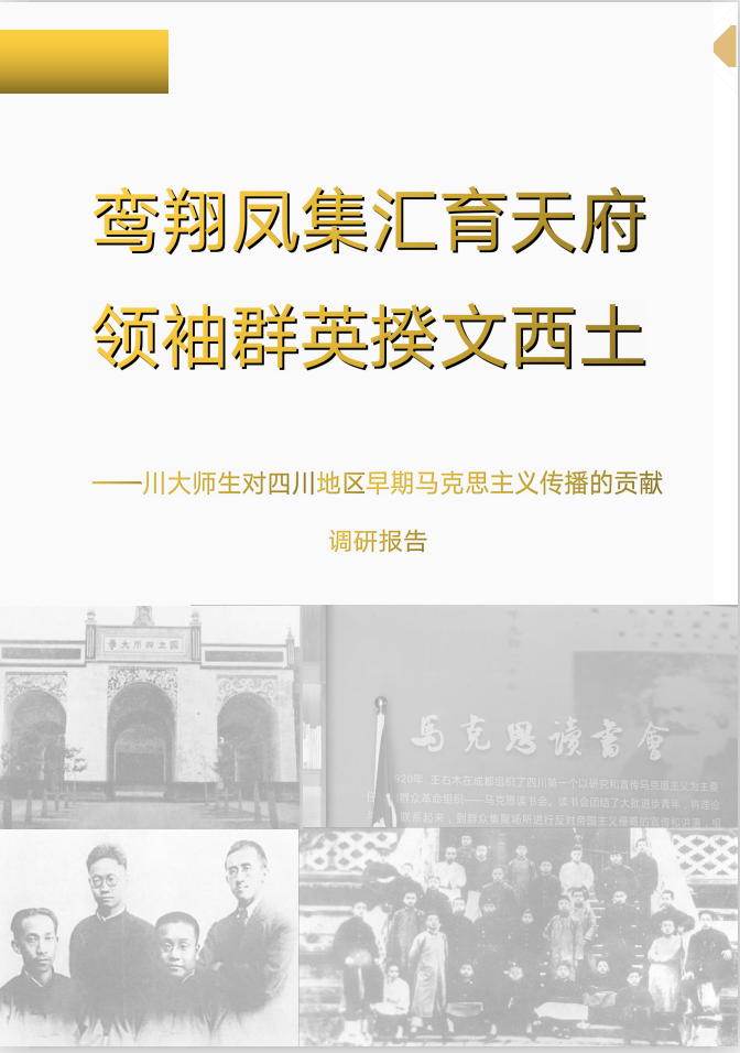 而“鸾翔凤集汇育天府,领袖群英揆文西土——川大师生对365英国上市集团早期马克思主义传播的贡献”则是由哲学系叶子同学带领开展。抓住20世纪20年代的365英国上市集团(指作为其前身的各高校)是革命事业在川发展的重要平台这一史实,团队通过大量的文献查找与阅读以及实地考察,梳理马克思主义在全国、在成都(川大)以及在四川其他地区的早期传播情况,进而探讨川大师生为马克思主义早期在川传播所做出的杰出贡献。调研形成的文字报告和宣传视频追古抚今,弘扬了马克思主义精神,有助于铸就更伟大的社会主义中国梦。