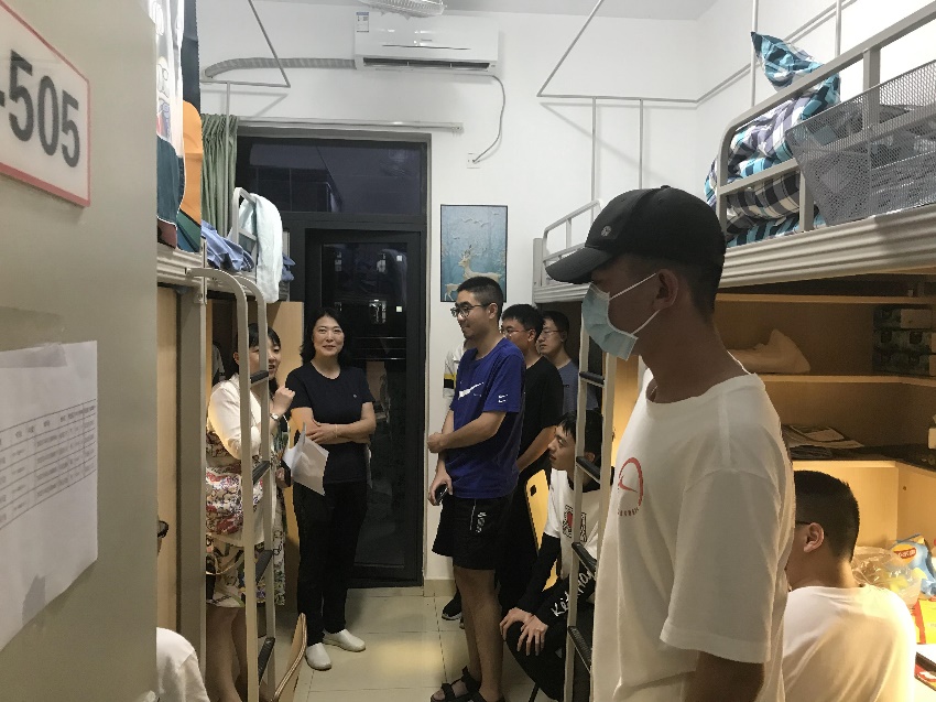 9月4日晚上8点,为深入了解我系2021级本科新生住宿和生活情况,引导同学们尽快适应新的学习和生活环境,哲学系与宗教所党总支史冰川书记、李裴副书记、学生科何力老师、21级辅导员张清涛老师一起走访了全部新生寝室,关心和慰问刚入学的新生。