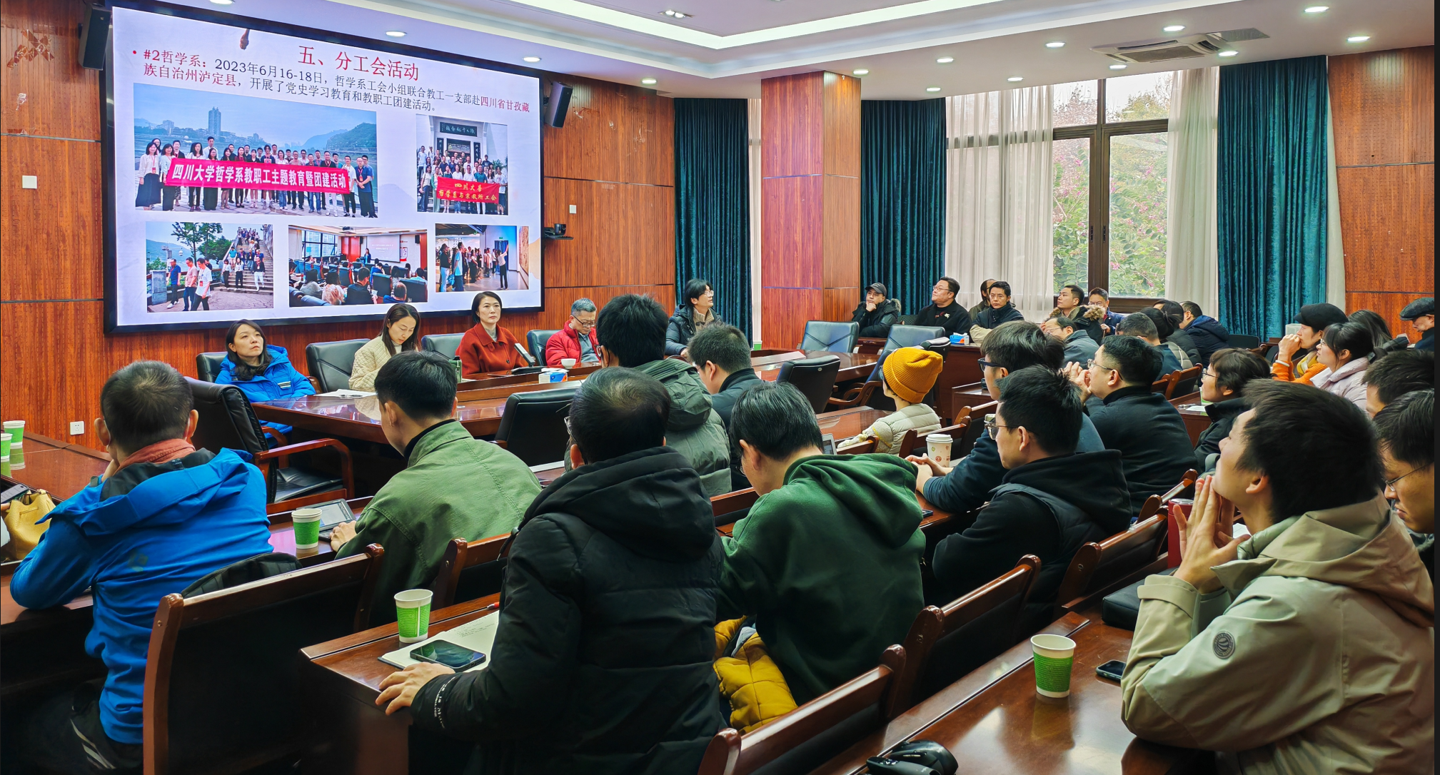 12月22日下午,哲学系与宗教所第一届全体教职工暨工会会员大会第四次会议在文科楼200会议室顺利召开,哲学系与宗教所全体教职工和工会会员出席大会,会议由党总支史冰川书记主持。