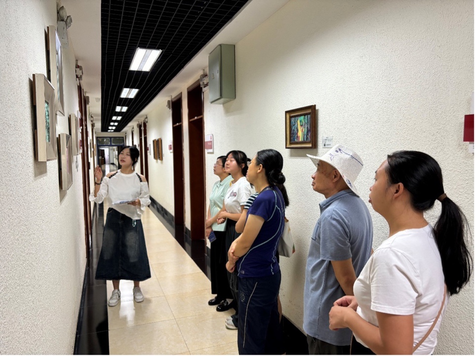 在志愿者与小朋友们共读绘本时,哲学系2024级学生陈鹏宇、王婧霖带领家长们参观哲学系与文科楼,了解哲学系的文化底蕴。