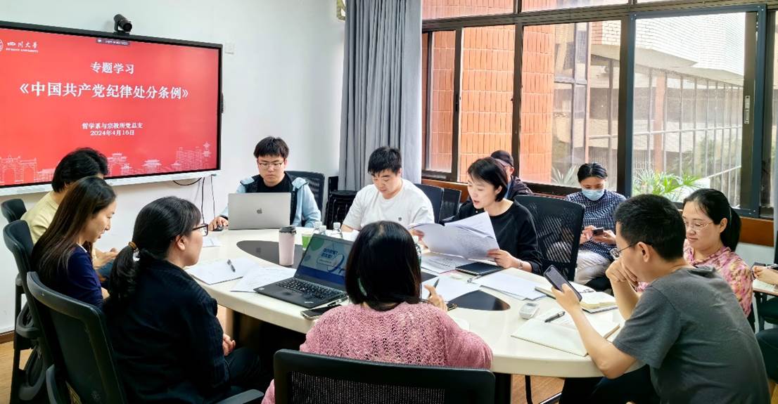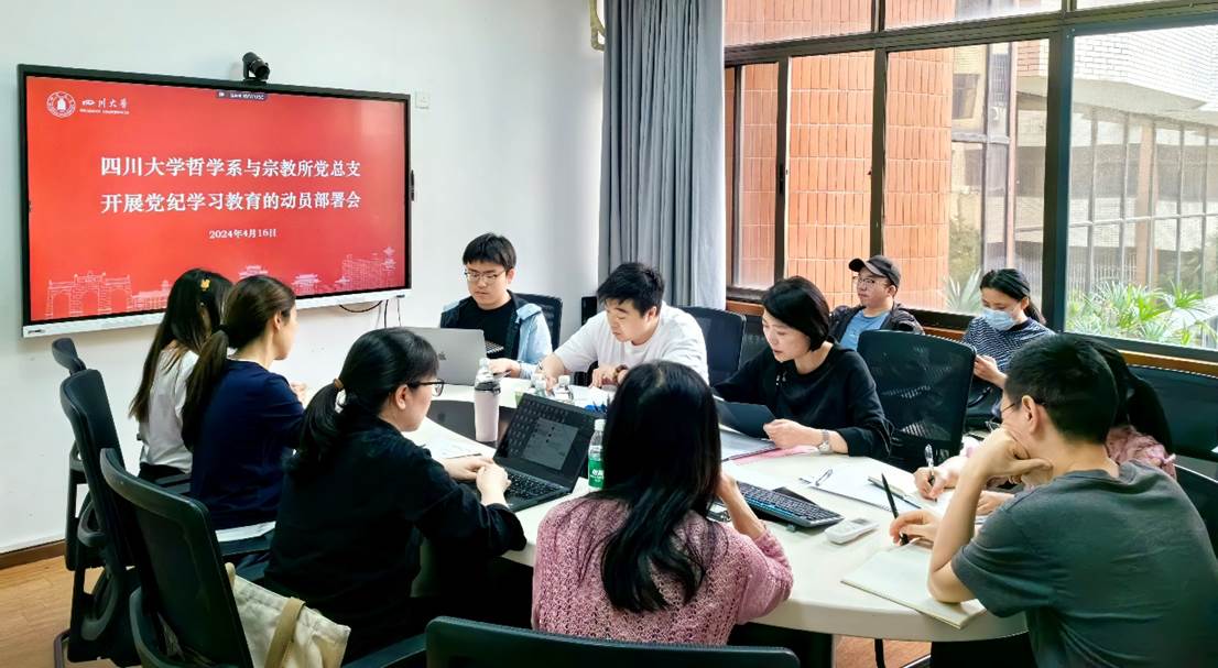 2024年4月16日下午,哲学系与宗教所党总支在文科楼205会议室召开党纪学习教育动员部署会,党总支委员、专职组织员、支部书记和支部委员等参加会议,会议由史冰川书记主持。