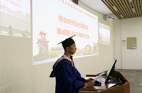 四、毕业研究生代表施诚刚发言