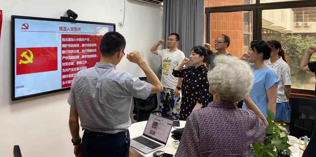 第三阶段,由史冰川书记领誓,全体党员同志通过线上线下的方式重温了入党誓词。