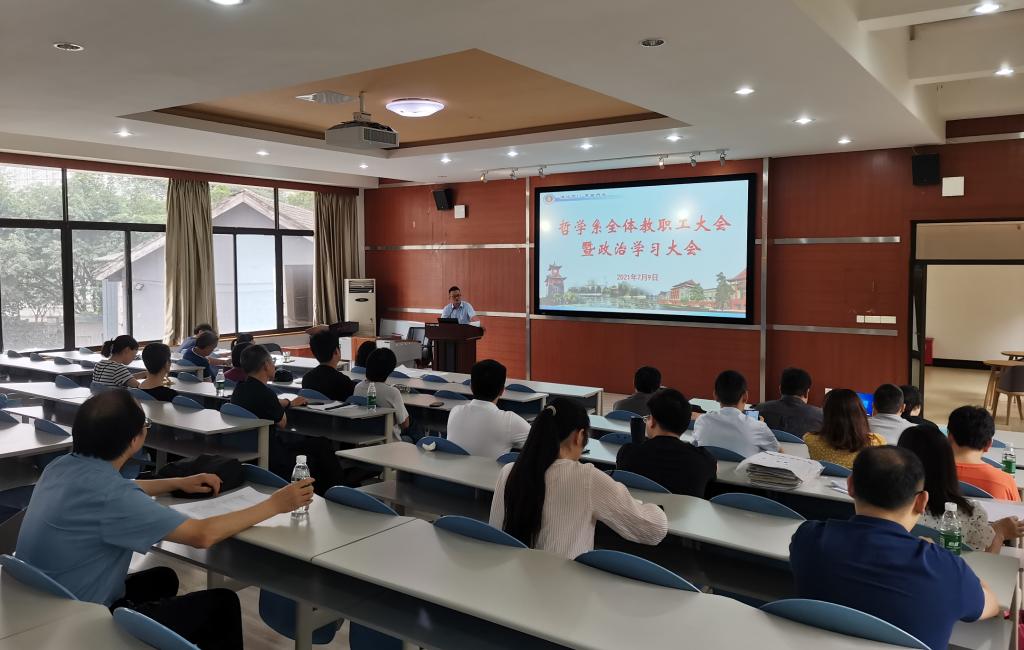 2021年7月9日上午,哲学系在文科楼274举行课程建设经验交流会,全体教职工、教学督导组成员、课程经费分享教师代表参会,会议由余玥主持。